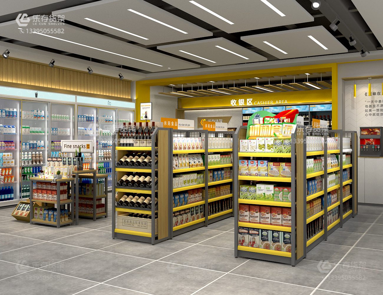 廈門便利店貨架,便利店陳列設(shè)計(jì),便利店貨架設(shè)計(jì),便利店貨架,便利店貨架裝修效果圖(樂存貨架)